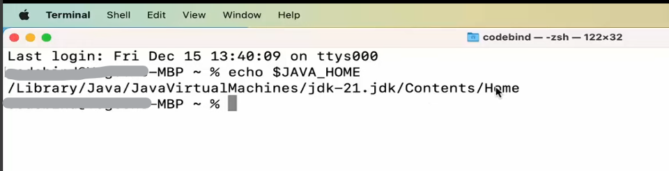| Matching Java Virtual Machines (1)21.0.1 (arm64) “Oracle Corporation’ – “Java SE 21.0.1” /Library/Java/JavaVirtualMachines/jdk-21.0.1.jdk/Contents/Home |