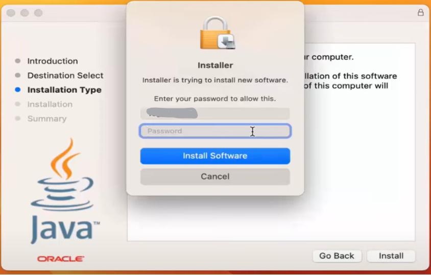 MacOS is going to ask you for your Password, once you introduce your password, click on “Install Software”.
